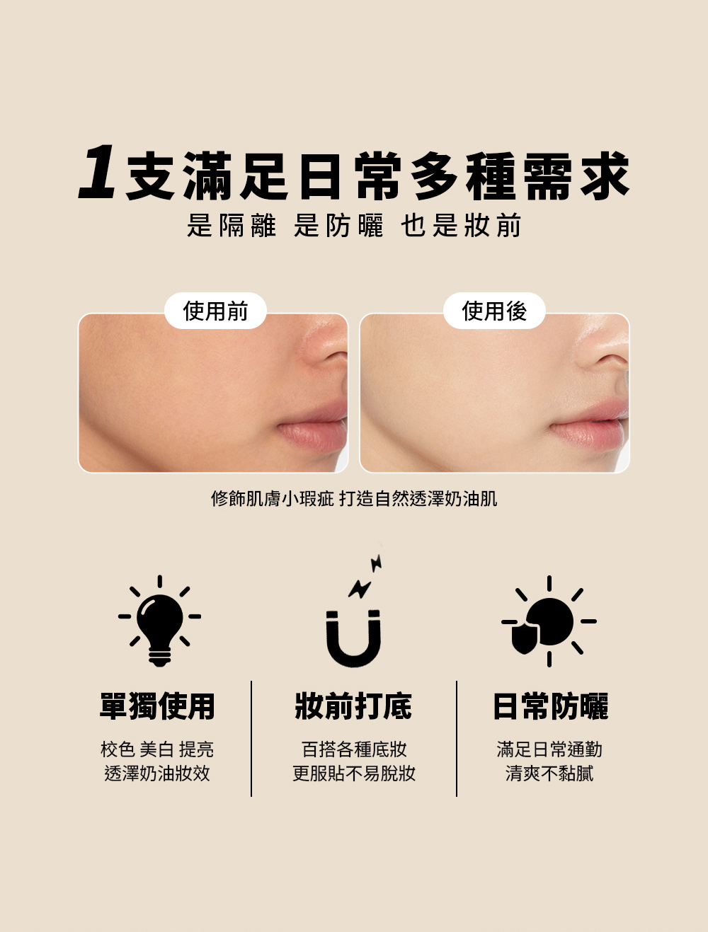 清爽不油膩,令肌膚勻淨透亮,質地柔滑易塗抹。